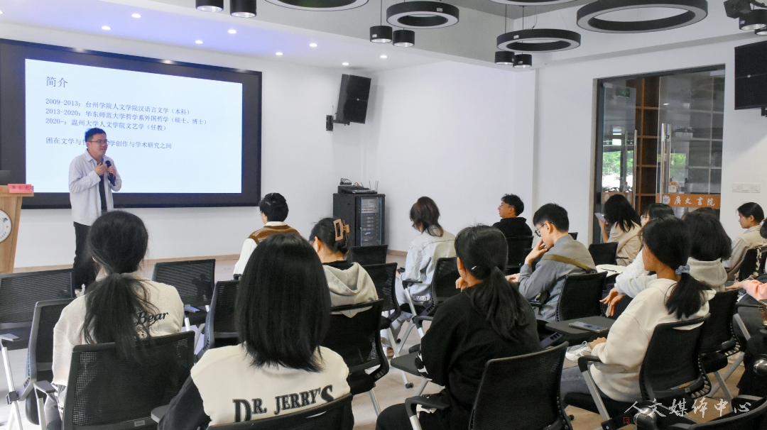 4月27日下午,由人文团学会实践就业部承办的第十三期“研途有你”活动于广文书院多功能厅举行。本次活动特邀汉语言文学专业13届毕业生、华东师范大学哲学系博士、温州大学suncitygroup太阳集团黄家光老师作“在考研与写作之间来回折腾”主题讲座,suncitygroup太阳集团辅导员赵远哲及人文学子参加活动。