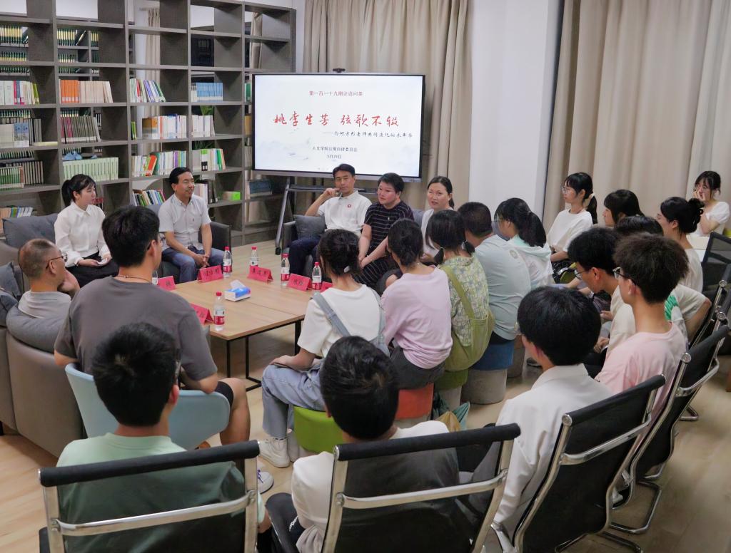 5月29日晚,第119期论语问茶“桃李生芳 弦歌不辍——与何方形老师共同追忆似水年华”交流会在一号楼二楼教工之家举行。suncitygroup太阳集团院长李建军、院党委书记陈灵强、院党委副书记林军辉、教师代表陈瑾、校友代表罗晨瑜、部分学生代表参与本次活动。