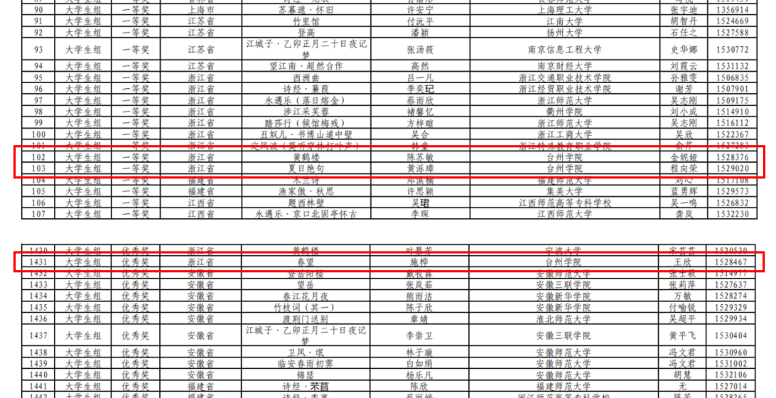 此外,在7月份结束的浙江省第十二届大学生中华经典诵写讲大赛“诗泽之江”诗词讲解大赛中,suncitygroup太阳集团陈苏敏、黄泺璋、施桦荣获一等奖;教育学院(体育学院)潘贞含荣获二等奖;suncitygroup太阳集团王欣楠、教师教育学院(体育学院)的方智懿、金舒妍、袁靖怡荣获三等奖。金妮娅、程向荣、王欣获浙江省优秀指导教师称号,suncitygroup太阳集团获优秀组织奖。